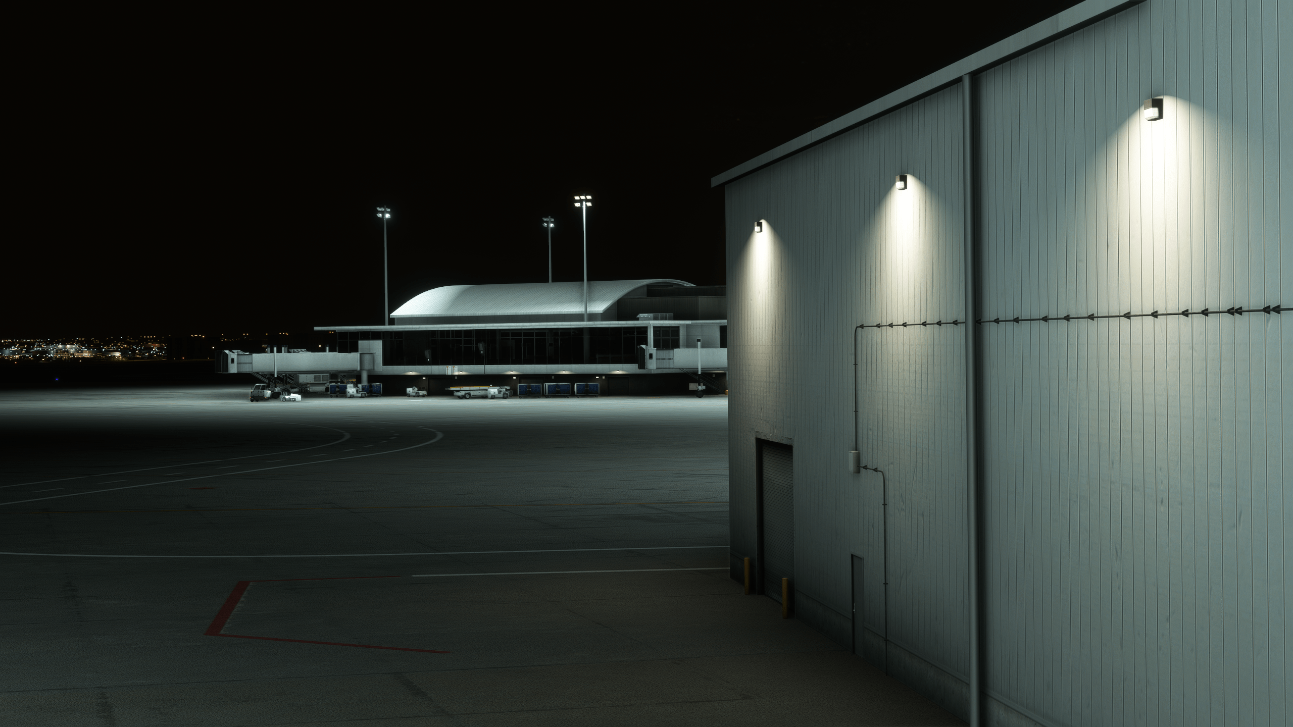 The night lighting is great. It looks convincing, not too bright, but also not too dark. The many reflectors scattered throughout the airport walls do a fine job of lighting the surface without overdoing it, and the same applies to the light poles.