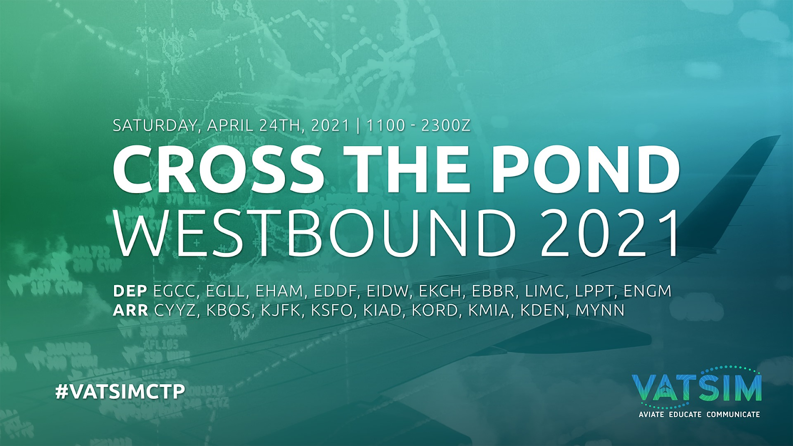 Cross the Pond is VATSIM’s most popular event, held bi-annually where participants can fly to and from specially selected locations. The event is flown Westbound early in the year, and Eastbound later in the year. VATSIM uses the word “pond”, referring to the Atlantic Ocean where pilots fly over.