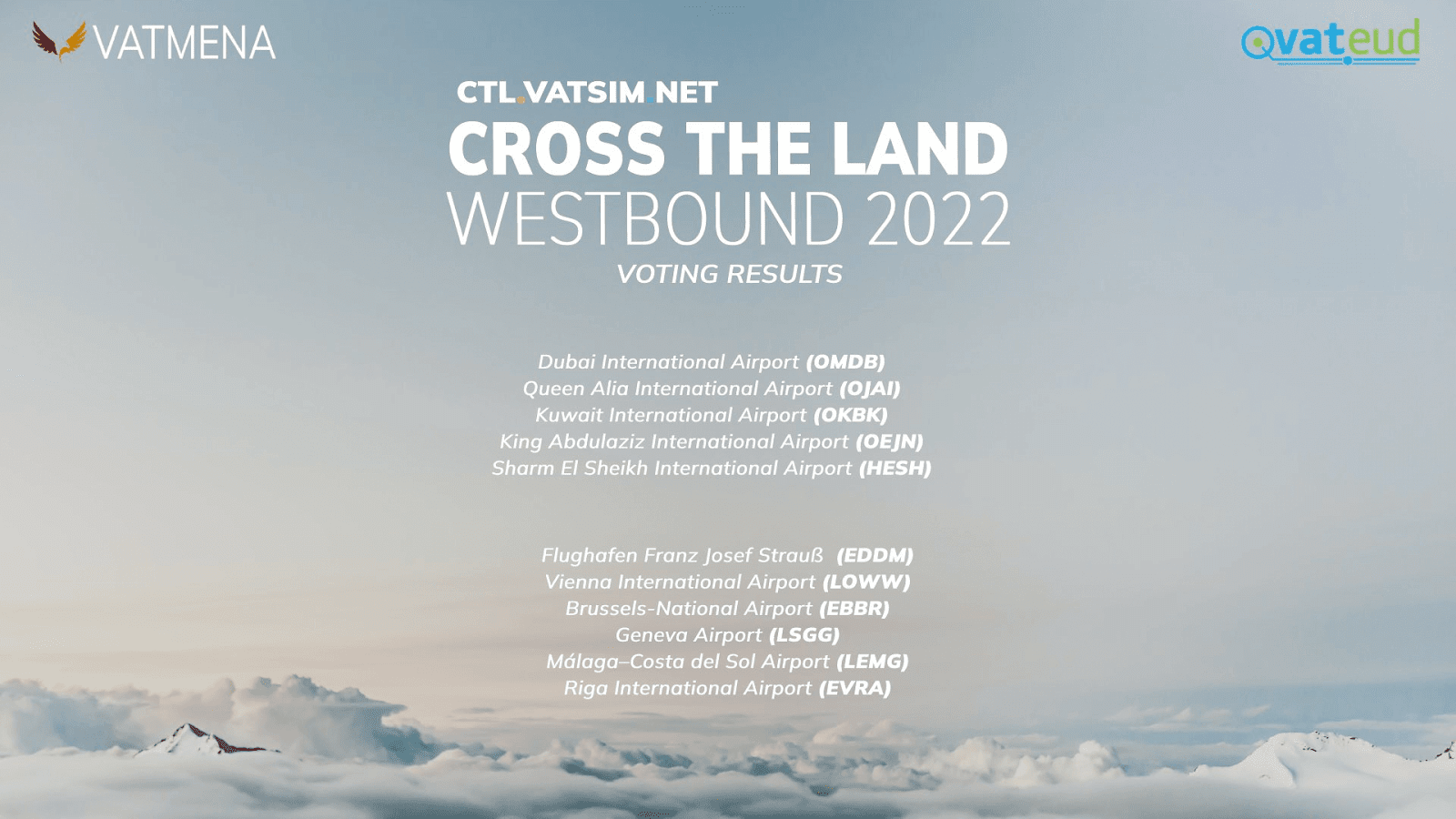 Cross the Land is one of the most notable events occurring on the network, with the last CTL event taking place in October of last year. With many pilots from around the globe flying on the network to a list of pre-determined airports, the list for CTLW has been released. The list includes a variety of Middle Eastern and European airports, which are shown below.