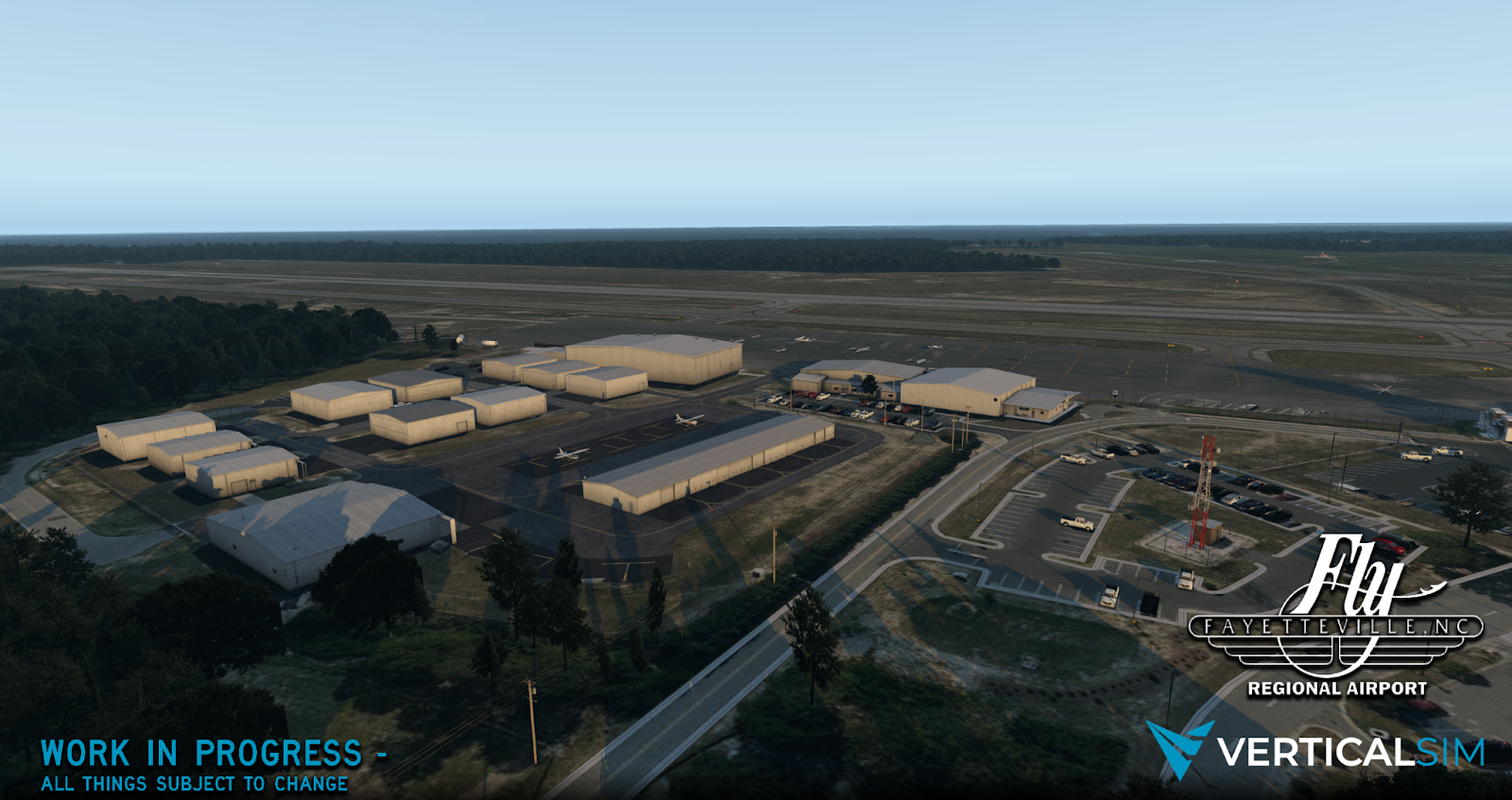 After the team’s spree of releasing Microsoft Flight Simulator products, Verticalsim has announced their next project will be Fayetteville Regional Airport for X-Plane 11. It features interior modelling of both the terminal and FBO, HDR night lighting and surrounding ortho imagery.