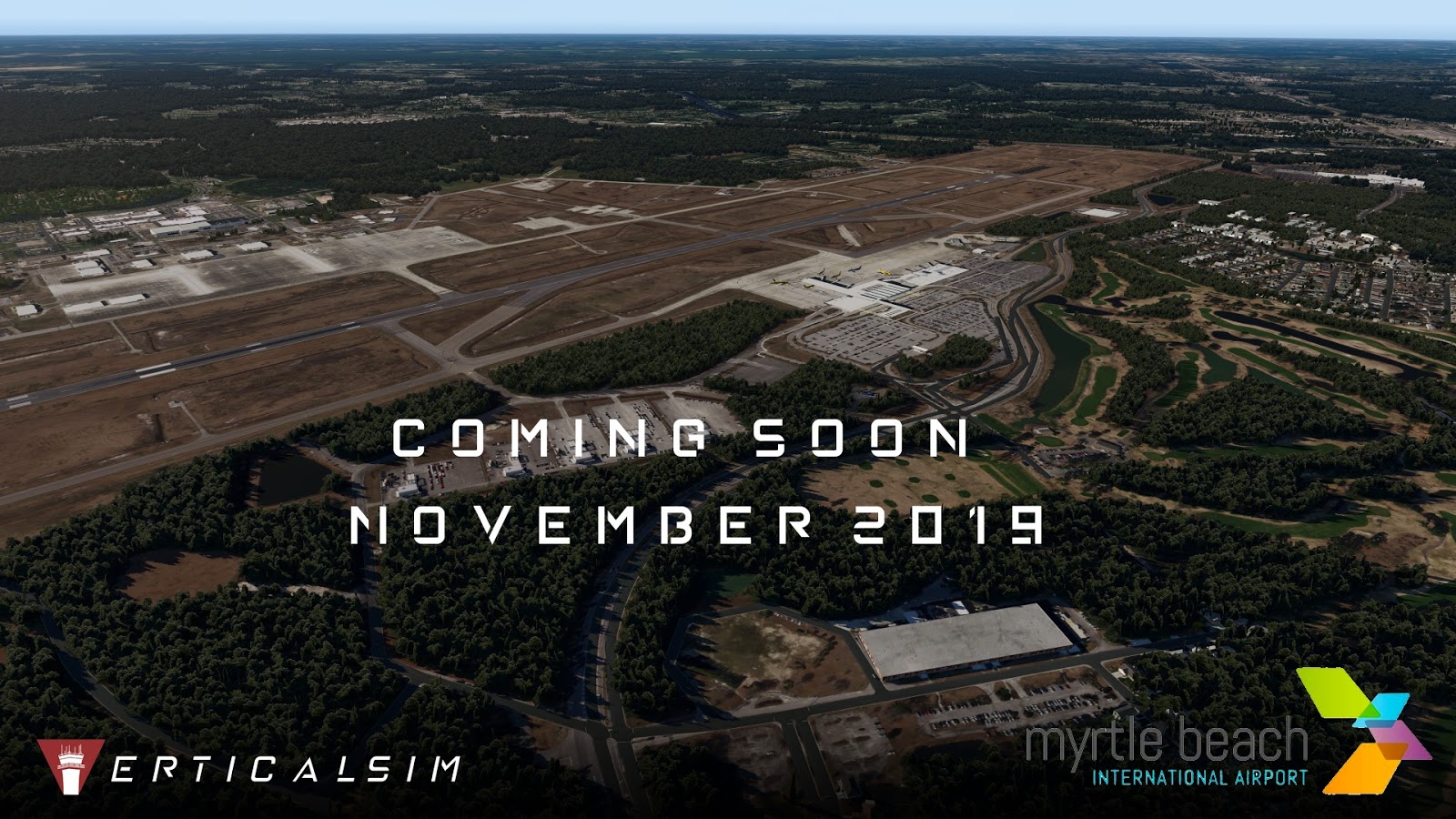 Developer Vertical Simulations Studios has debuted their latest airport in the works for X-Plane, Myrtle Beach (KMYR). Announced on a post on their Facebook page the airport is shown to include 4k ortho imagery, extensive use of PBR and Autogate support (SAM support is said to be coming later).