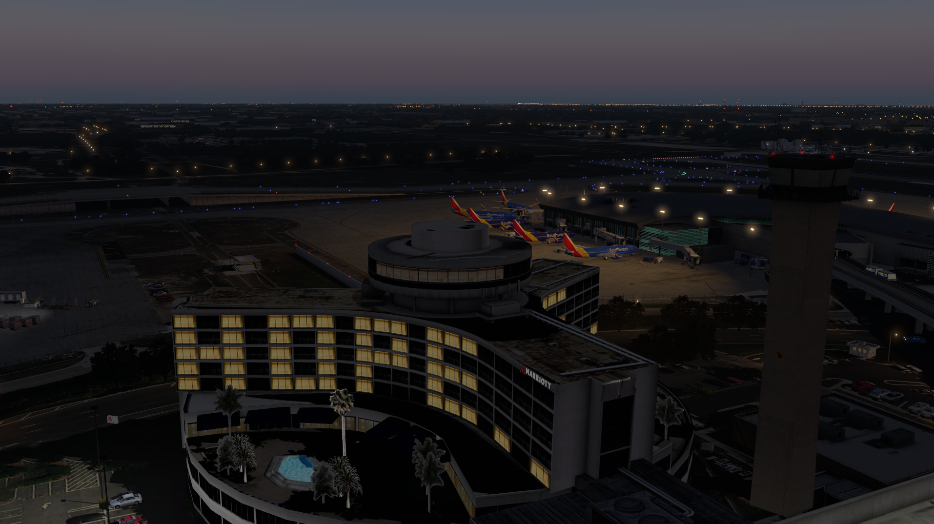 A complete redevelopment form the previous freeware airport, the rendition brings Tampa Airport up to date, taking into account of any major changes and expansions in 2020. Textures are high res with photorealism, sourced from high-res cameras. Hand Place autogen populates across the surrounding perimeter of the airport, perfectly landscaped with PBR ground textures, with AO baked groundwork for added depth, plus thousands of hand placed custom vegetation. The airport features custom terrain mesh for modelled underpasses. Expanding the coverage, an optional freeware downtown rendition of Tampa is included. Animated cars and ground service vehicles crawls across to bring life into your experience. Apart from adopting current community standards such as SAM support, the airport is designed to be compatible with VStates Florida, and Orbx TrueEarth Florida.