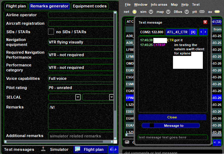 In the images given to us, the tester outlines a few different features of the Swift client, including improved ground clamping – to keep multiplayer traffic from hovering above ground when using different simulator platforms – a notorious issue with XSquawkBox.