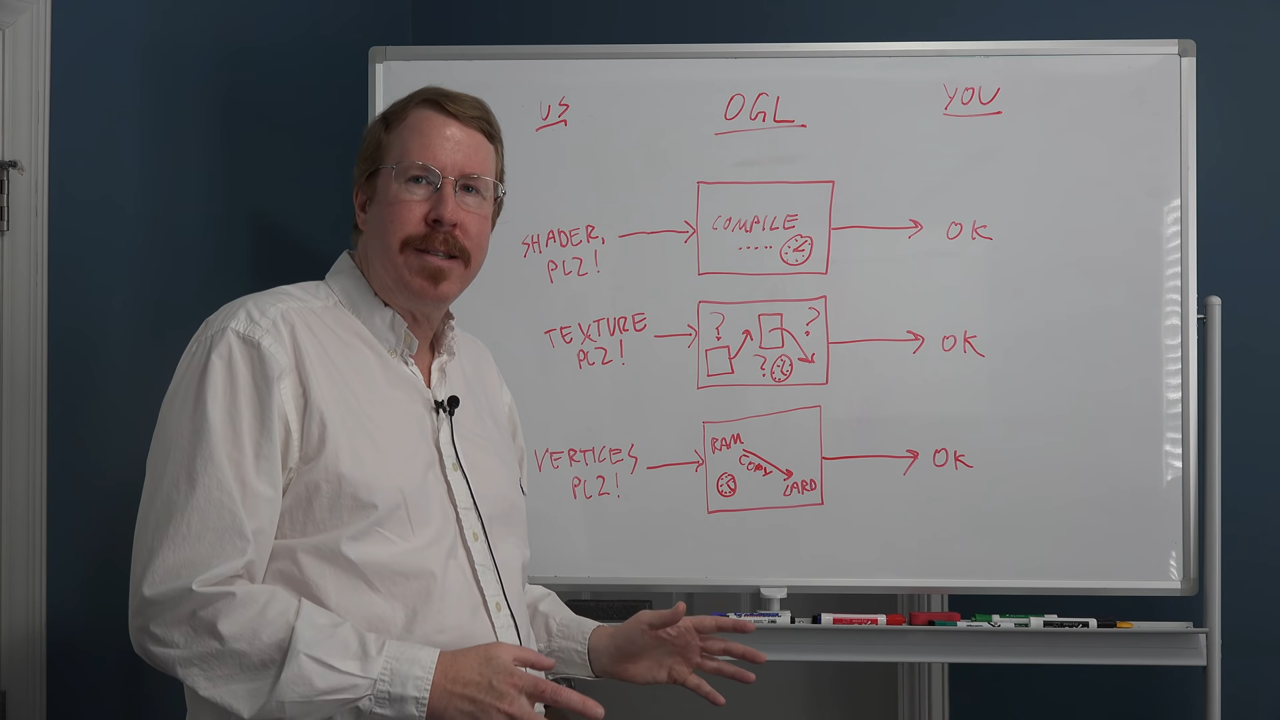 Vertices and “the geometry of everything in the world” is the final puzzle the team have worked on. In this aspect, geometry must be copied from RAM to the GPU, which again introduces performance issues that lead OpenGL into a “constant state of shock.”
