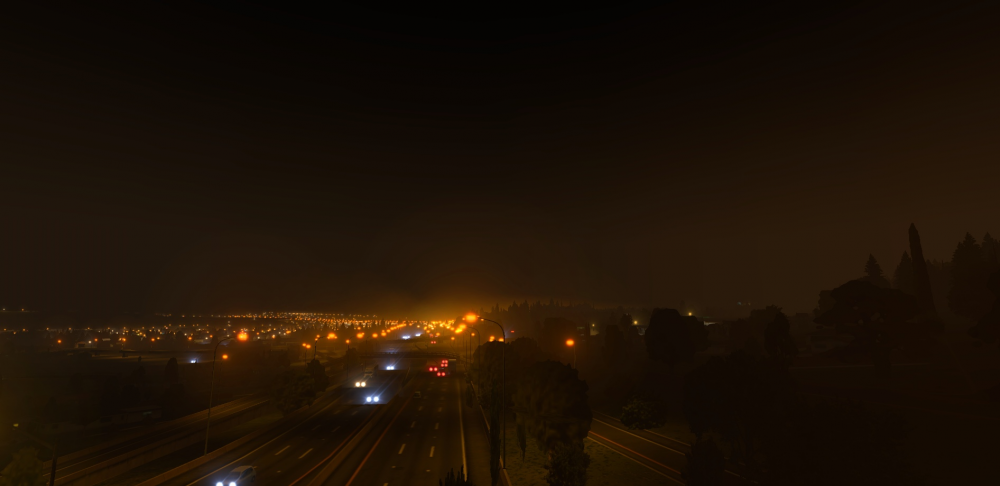 On the topic of lights, cloud illumination at night by street lights, buildings, etc. will now only occur in busy metropolis areas. Areas that lack large amounts of light coverage will now be represented more realistically with darker clouds. Illumination of the clouds will occur if one of the following occurs:
