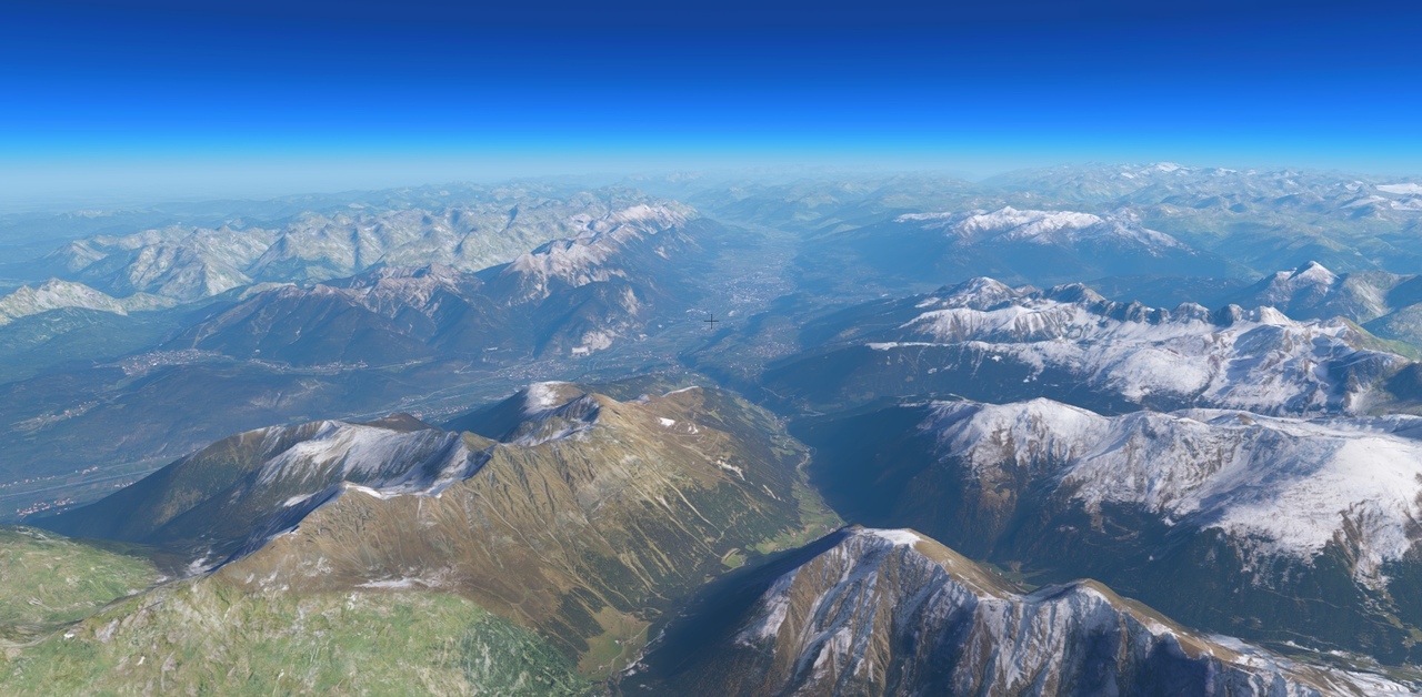 The plugin features a custom atmosphere model with Raleigh-scattering and a custom seasons engine, which works with default terrain (it is incompatible with Orthoimagery).