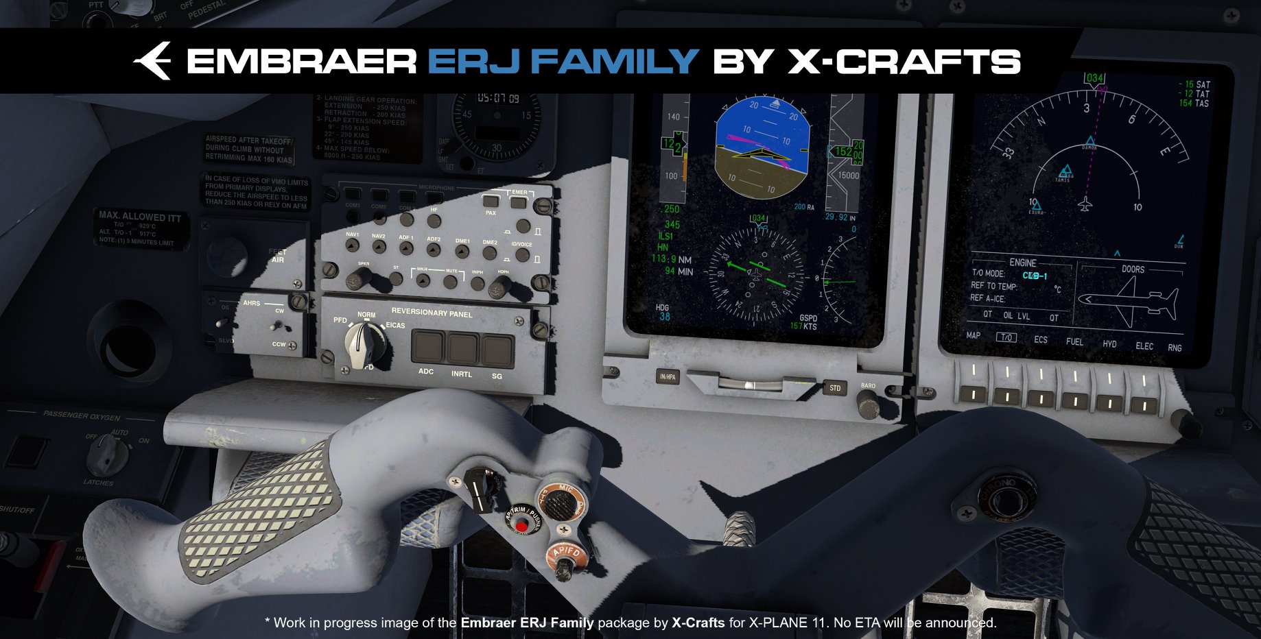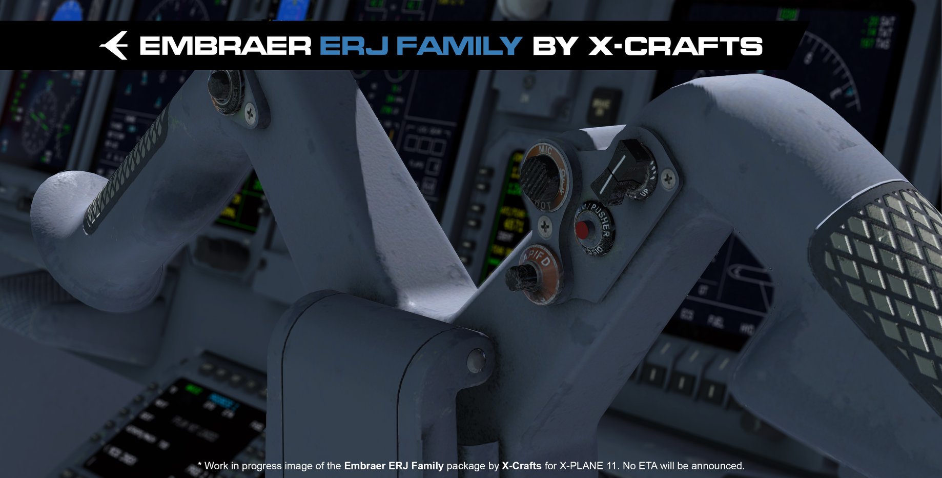 Further previews of X-Crafts’ ERJ Family, currently in development for X-Plane 11, have today been posted on their Facebook page. The previews centralise on the cockpit, showing the work on the 3D modelling and texturing. Find many of the previews below: