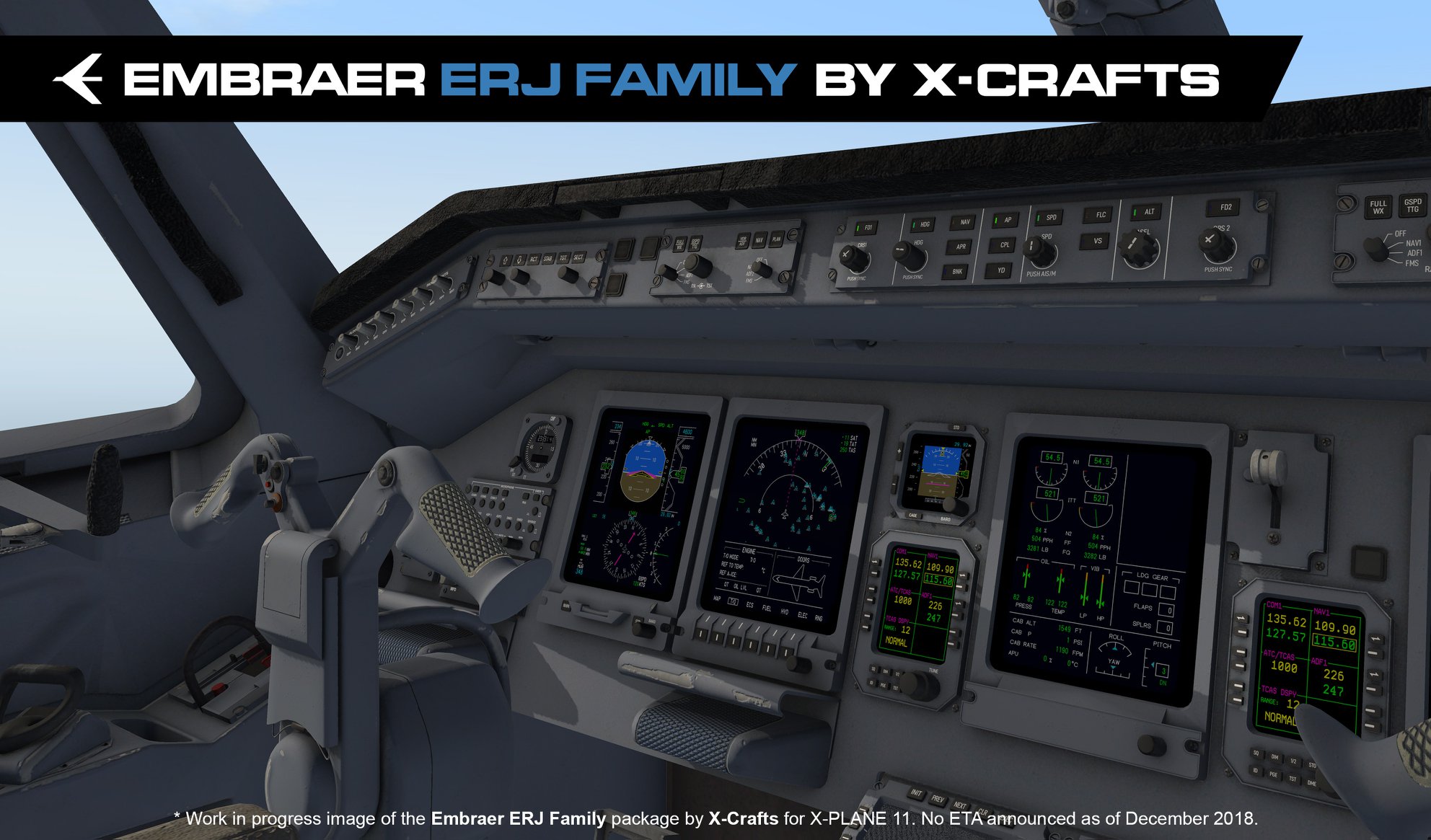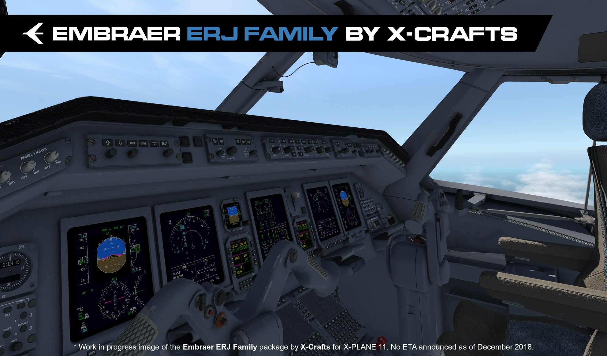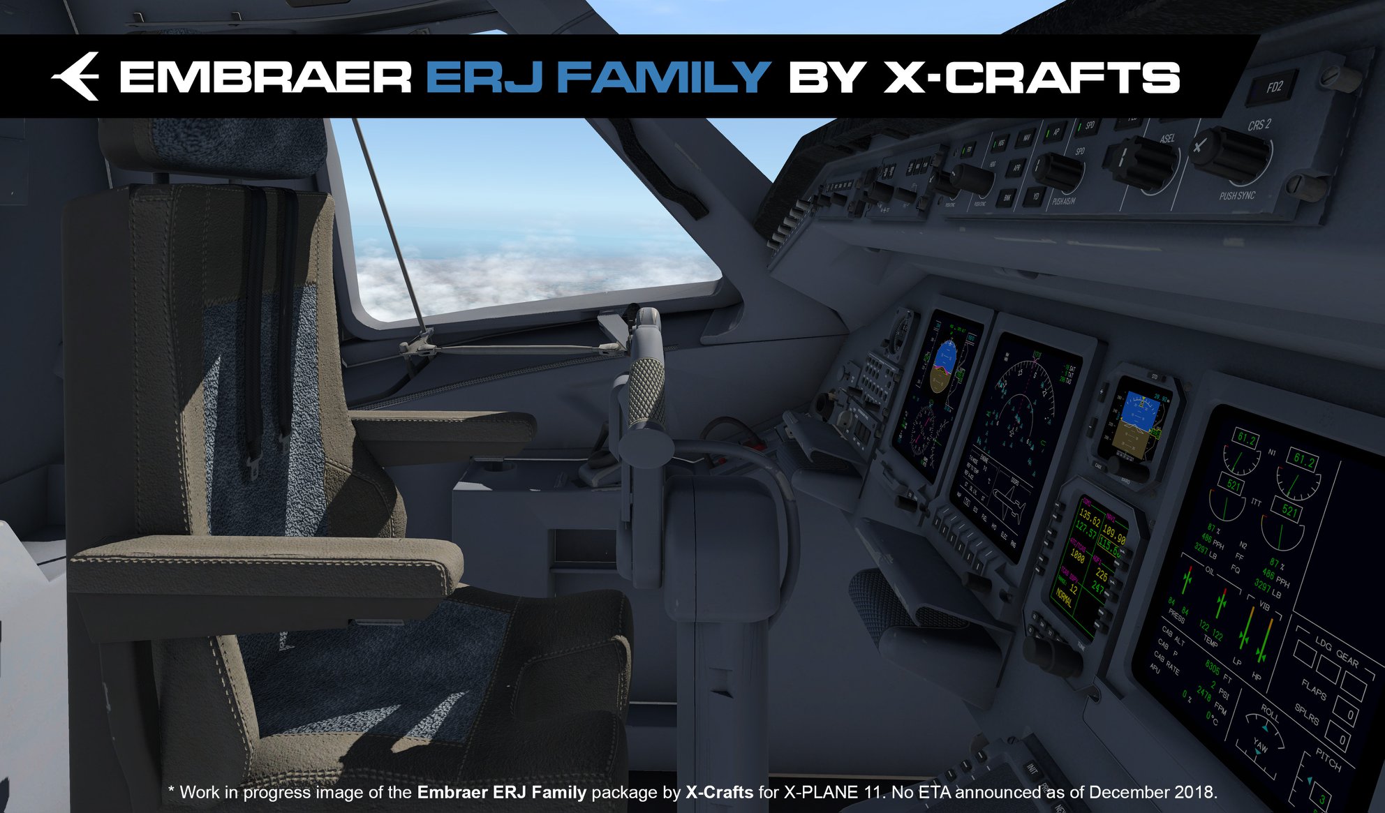 Following the sucess of their earlier Embraer releases, X-Crafts have shown off further previews of their upcoming ERJ series family for X-Plane. Previously we’ve reported that three types of ERJ will be modelled, ranging from the 37-seater E135 to the E145, capable of seating 50 passengers.
