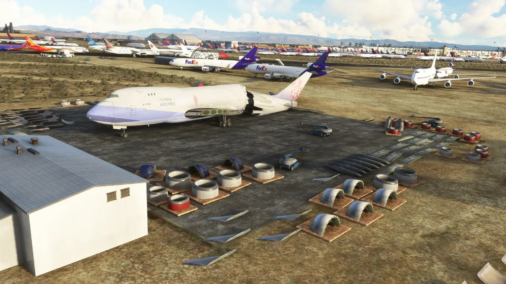 Xometry has provided a detailed feature log upon release of this package. Starting off, detailed buildings and ground textures have been modelled with PBR textures. Xometry has provided both a pre COVID and current renditions fo the airport. Disassembled aircraft parts can be found across the airfield, with including over 150 custom placed aircraft over the airport grounds. If you are interested in the full feature list, you can check out the products webpage.