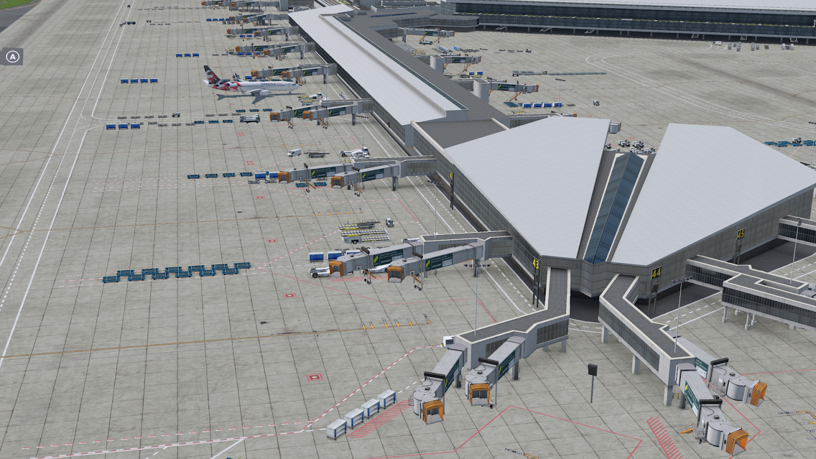 The overall look of the airport is very good, the ground textures are extremely high quality. The asphalt and grass are very well done on the apron, runway and around the airport. The 3D grass adds immersion, however, with the high density, users with lower end machines may struggle on performance.